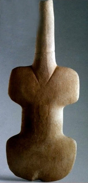 κυκλαδικά ειδώλια: Η μορφή του αποτελείται από ένα κυρτό σώμα, λεπτό λαιμό και