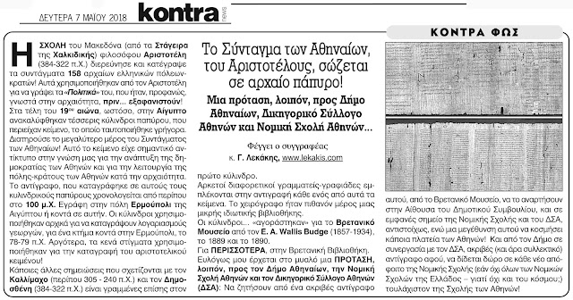 ΛΕΞΕΙΣ-ΚΛΕΙΔΙΑ: Σταγειρα, φιλοσοφια, Αριστοτελης, συνταγμα, πολεις-κρατη, Αριστοτέλη Πολιτικα, Αιγυπτος, παπυροι, Συνταγμα Αθηναιων, δημοκρατια, Ερμουπολη, Ερμουπολις, Καλλιμαχος, Δημοσθενης, Βρετανικο Μουσειο, Wallis Budge, 1889,1890, Βρετανική Βιβλιοθήκη, ΔΗΜΟΣ ΑΘΗΝΑΙΩΝ, ΑΘΗΝΑ, ΝΟΜΙΚΗ ΣΧΟΛΗ ΑΘΗΝΩΝ, ΔΙΚΗΓΟΡΙΚΟΣ ΣΥΛΛΟΓΟΣ ΑΘΗΝΩΝ, ΔΣΑ, ΑΘΗΝΑΙ, ΔΗΜΟΣ ΑΘΗΝΑΣ, ΔΗΜΟΣ ΑΘΗΝΩΝ