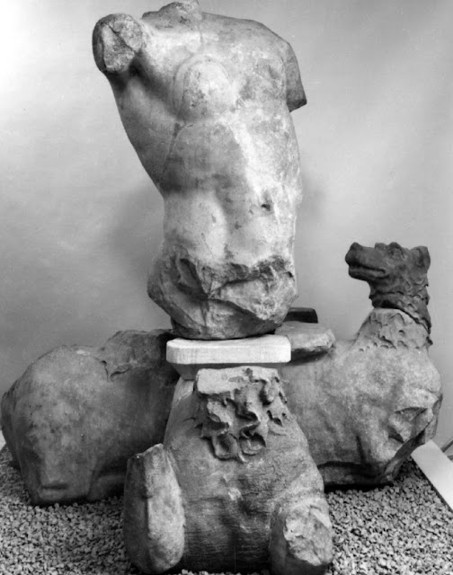 Τα ερείπια αυτού της γλυπτού συμπλέγματος, μαζί με άλλα τμήματα της πέτρινης οικοδομής,