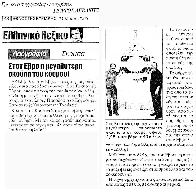 Στις Καστανιές Έβρου η μεγαλύτερη σκούπα στον κόσμο! Σε παραδοσιακό εργαστήρι κατασκευής χειροποίητης σκούπας, από σόργο – του Γ. Λεκάκη