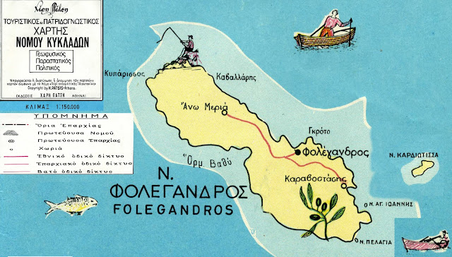 Παλαιός τουριστικός και πατριδογνωστικός χάρτης της Φολεγάνδρου