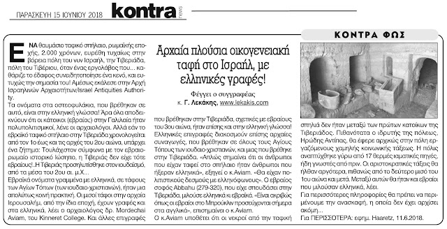 Αρχαία πλούσια οικογενειακή ταφή στην Τιβεριάδα του Ισραήλ, με ελληνικές γραφές!