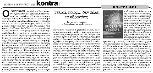 ΑΚΟΥΣΤΕ την ραδιοφωνική εκπομπή του Γ. Λεκάκη “Ποιος φοβάται το υδρογόνο;”.