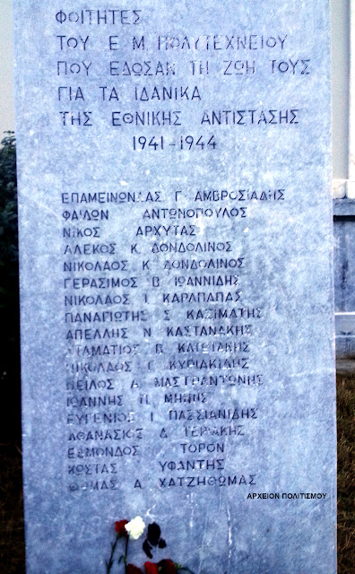 Το μνημείο των ηρωικών φοιτητών του Πολυτεχνείου, που έδωσαν την ζωή τους για τα ιδανικά της Εθνικής Αντίστασης 1941-1944
