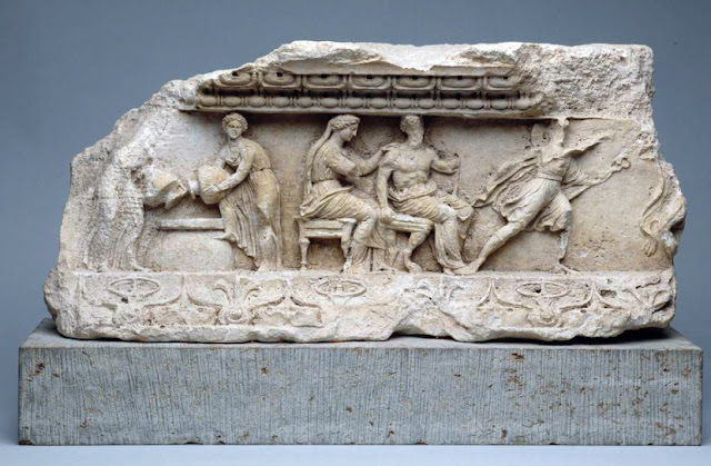 Θραύσμα από ασβεστόλιθο από ταφικό ανάγλυφο, με τον Ερμή Ψυχοπομπό