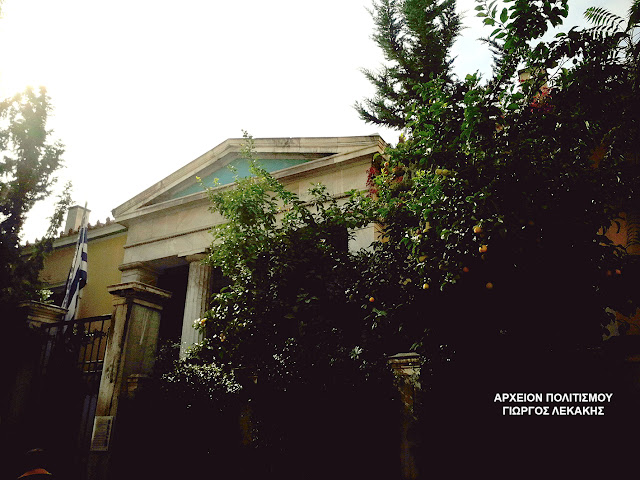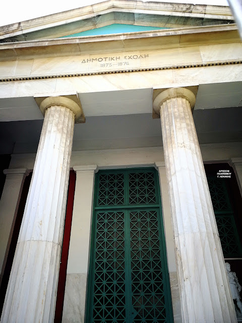 Το νεοκλασσικό ισόγειο κτήριο με την μνημειακή είσοδο με τους δύο