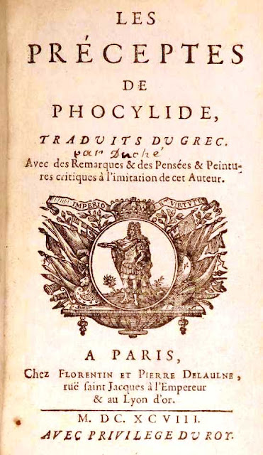ΛΕΞΕΙΣ-ΚΛΕΙΔΙΑ: 1698, Ηθικη, απαντα, Φωκυλιδης, Βανσι, Βανσυ, αποσπασμα, ελεγεια, ποιητης, απολογια, Μιλητος, γνωμικο, εξαμετρο, 6, ηθικος κανονας, δικη, μυθος, ποιημα, αποφθεγμα, γαλλικα, εκδοση, βιβλιο, Παρισι, Γαλλια, Σωκράτης, απολογια