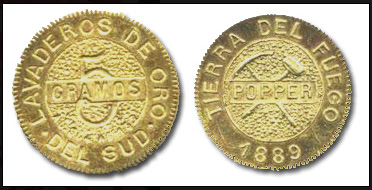 οποίο κόβει χρυσά νόμισμα της Γης του Πυρός με βάρος σε γραμμάρια. Το 1890 η