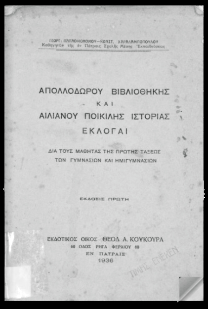 Σχολικό εγχειρίδιο του 1936 για το μάθημα των Αρχαίων