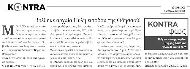 ΛΕΞΕΙΣ-ΚΛΕΙΔΙΑ: Πυλη, Οδησσος, κηπος, Βαρνα, Βουλγαρια, Μιλητος, Θρακη, Οδυσσεας, Μοισια, Θερμα, λουτρα