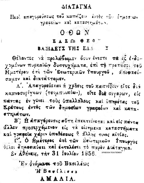 Το κάπνισμα σε δημόσιους χώρους στην Ελλάδα έχει απαγορευθεί από το… 1856!