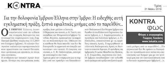 Παράλληλα, ο πρόεδρος της Ιμβριακής Ένωσης Μακεδονίας-Θράκης, κ. Παύλος