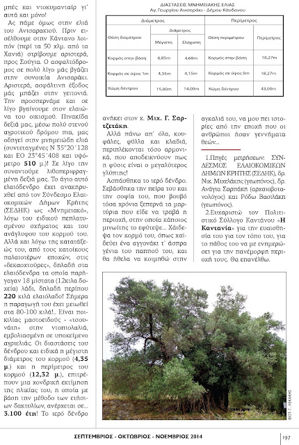 εν λόγω ελαιόδεντρο έχει ανακηρυχθεί από τον Σύλλογο Ελαιοκομικών Δήμων Κρήτης