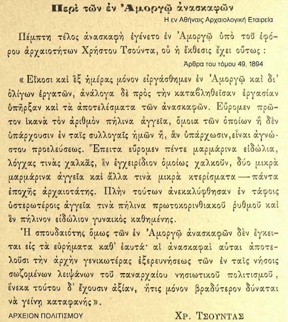 ΛΕΞΕΙΣ: Χαλκινο εγχειριδιο, πηλινα αγγεια, μαρμαρινα ειδωλια, χαλκινη λογχη, κτερισματα, πηλινα πρωτοκορινθιακου ρυθμου, πηλινο ειδωλιο καθημενης γυναικος, 1894, 1895, Αμοργος, νησιωτικος πολιτισμος, νησι, Κυκλαδες, Τσουντας, πηλινο αγγειο,μαρμαρινο ειδωλιο, κτερισμα, πρωτοκορινθιακος ρυθμος, καθημενη γυναικα, ανασκαφη, μπρουτζινο μαχαιρι, Γολλαστον Φρανκς, 1881, 1961, Βρετανικο Μουσειο, Γολαστον Φρανκς
