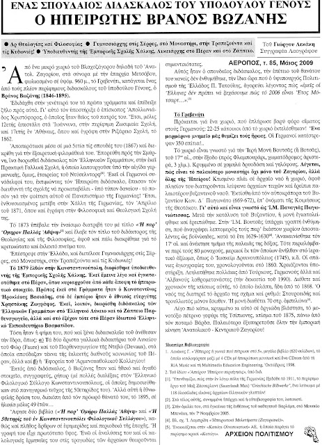 Ένας σπουδαίος διδάσκαλος του υποδούλου Γένους: Ο Ηπειρώτης Βράνος Βωζάνης! – δρ. Θεολογίας και Φιλοσοφίας – Γυμνασιάρχης στις Σέρρες, στο Μοναστήρι, στην Τραπεζούντα και τις Κυδωνιές! – Υποδιευθυντής της Εμπορικής Σχολής Χάλκης – Λυκειάρχης στο Πέραν και στο Ζάππειο
