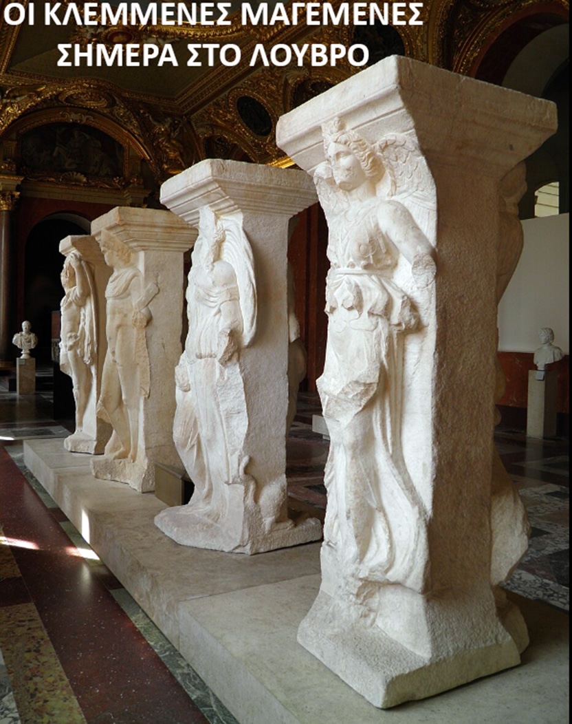 Τα αγάλματα ήταν γι’ αυτούς ιερά, και κουβαλούσαν την προαναφερομένη μεταφυσική παράδοση, που την σέβονταν… Παρ’ όλ’ αυτά, τα αγάλματα μεταφέρθηκαν αρχικώς στο λιμάνι, όπου παρέμειναν για πολύ καιρό… Και απ’ εκεί με πλοίο επήγαν (1865), χωρίς την θέλησή τους, στην Γαλλία… Υπόθεση-καρμπόν «Έλγιν νο 2» δηλαδή. Γι’ αυτό και πολλοί ξέρουν τα αγάλματα ως «Καρυάτιδες της Θεσσαλονίκης»… Μεταφέρθηκαν με το πλοίο «La Mouette», αρχικώς στο Νησί των Κύκνων (Ile de Sein, μια στενή λωρίδα μήκους 800 μ. στην μέση του Σηκουάνα) και από εκεί, το 1869, με προσωπική εντολή του Ναπολέοντος Γ’, στο Μουσείο του Λούβρου…
