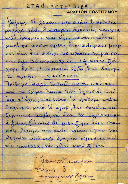 Συνταγή για τα παραδοσιακά σταφιδοτρίβιδα της Κρήτης – της Ελ. Νύκταρη μερίδιο FacebookTwitterPinterestWhatsAppLinkedinEmailTelegramCopy URL ΠΕΡΙΣΣΟΤΕΡΑ θέματα ΔΙΑΤΡΟΦΗΣ, ΕΔΩ. ΛΕΞΕΙΣ: Συνταγη, παραδοσιακο γλυκο, σταφιδοτριβιδα, αλατι, λαδι, αλουσια, κανελλα, κανελα, μαστιχα, κονιακ, σουμα, ρακι, πορτοκαλι, ζαχαρη, σοδα, αλευρι, Κρητη ΑΡΧΕΙΟΝ ΠΟΛΙΤΙΣΜΟΥ See Full Bio Σχετικά Άρθρα ΑΦΡΙΚΗ ΑΡΧΑΙΑ Το άγνωστο «ευπαλίνειο όρυγμα» δυο αρχαίων Ελλήνων αρχιτεκτόνων – υπόγεια σήραγγα 5,6 χλμ.! – του Γ. Λεκάκη Του Γιώργου Λεκάκη Το Φουτσίνο είναι μια τεράστια λεκάνη (ιταλικά:... ΑΓΓΕΙΟΠΛΑΣΤΙΚΗ Το 3.700 χρόνων μινωικό Ανάκτορο των Αρχανών προστατευόταν από φυσικές καταστροφές!!! Το ανάκτορο των Αρχανών βρίσκεται στο κέντρο της σύγχρονης... ΑΓΙΟΓΡΑΦΙΑ Ήθη και έθιμα της αγίας Βαρβάρας – σχέση με Εκάτη, Δήμητρα και Ήρα – του Γ. Λεκάκη Του Γιώργου Λεκάκη Η αγία Βαρβάρα εορτάζεται στις 4 Δεκεμβρίου.... ΑΫΛΗ ΠΟΛΙΤΙΣΤΙΚΗ ΚΛΗΡΟΝΟΜΙΑ Από την αρχαία ελληνική μακαρία, το μελομακάρονο – τι συμβολίζει Της δρ. Γεωργίας Κατσογριδάκη, διαιτολόγου – διατροφολόγου Το μελομακάρονο αποτελεί... ΑΡΓΟΛΙΔΑ Η νήσος ΑΝΔΡΟΣ πήρε το όνομά της από τον Ανδρέα – του Γ. Λεκάκη Του Γιώργου Λεκάκη Η νήσος Άνδρος ονοματίσθηκε από τον ήρωα...