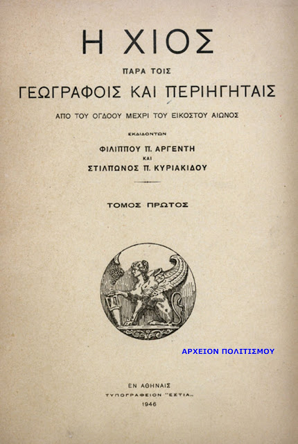 ΛΕΞΕΙΣΧιος, 8ος αιωνας μΧ, 20ος αιωνας μΧ, γεωγραφος, περιηγητης, Κατοχη, ΑΡΓΕΝΤΗΣ, ΚΥΡΙΑΚΙΔΗΣ, γεωγραφοι, περιηγητες, τυπογραφειο της Εστιας, Αθηνα, 1946, Εστια, Σφιγγα, Σφιγξ, Μασσαλια, 1891, Λονδινο, 1974, δικηγορος, διπλωματης, ιστορικος, ευγενης, ιταλια, Αριεντο, Γενοβα, Βρετανος αρχαιολογος, Σινκλαιρ Χουντ, ανασκαφη, Εμποριος Χιου, Αγιο Γαλας Χιου, Κομοτηνη, 1887, Θεσσαλονικη, 1964, λαογραφος
