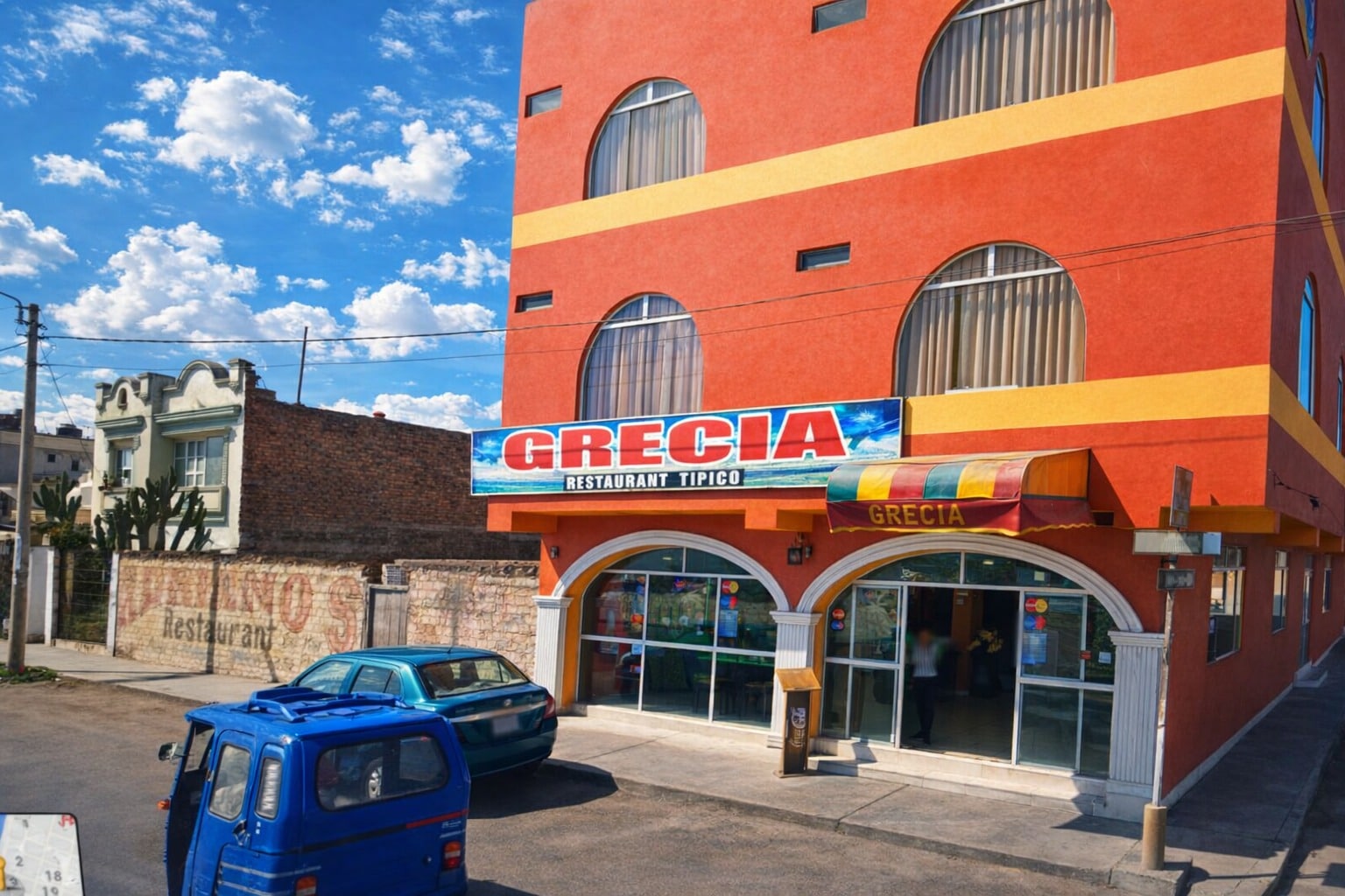 Ο αρβανίτης Ιωάννης Φαλκόνης Αργογιάννης (Juan Falkoni Arguyani), Έλληνας ναυτικός, παίρνει σύζυγο την Joaquina de la Cruz, μια Περουβιανή εντόπια της περιοχής και χτίζει το σπίτι τους στην θέση της νυν συνοικίας San Andrés (το σπίτι τους βρίσκεται στην σημερινή θέση Calle Grecia 110, μπροστά από την Πλατεία των Οπλων / Plaza de Armas και του Ελληνικού Αίθριου / Atrio Griego). Αυτή είναι η πρώτη οικοδομή και η ονομασία του πρώτου δρόμου με το όνομα της Ελλάδας.