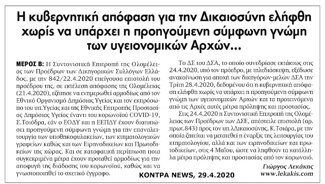 Επαναλειτουργία της δικαιοσύνης για την εξυπηρέτηση και την εξασφάλιση των τραπεζών – Η κυβερνητική απόφαση για την Δικαιοσύνη ελήφθη χωρίς να υπάρχει η προηγούμενη σύμφωνη γνώμη των υγειονομικών Αρχών – Το κράτος νομοθετεί προς όφελος καννιβάλων!