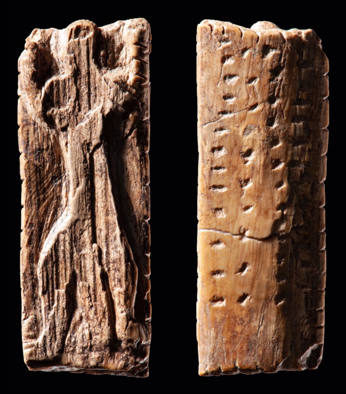 Το γλυπτο ειδώλιο του “Λατρευτή” από το σπήλαιο Geißenklösterle της Γερμανίας είναι περίπου 40.000 χρόνων. Αποτελείται από μια μικρή πλάκα από ελεφαντόδοντο, που φέρει μια ανθρωπόμορφη φιγούρα και πολλαπλές ακολουθίες από εγκοπές και κουκκίδες, μια πρωτο-σφηνοειδή γραφή!