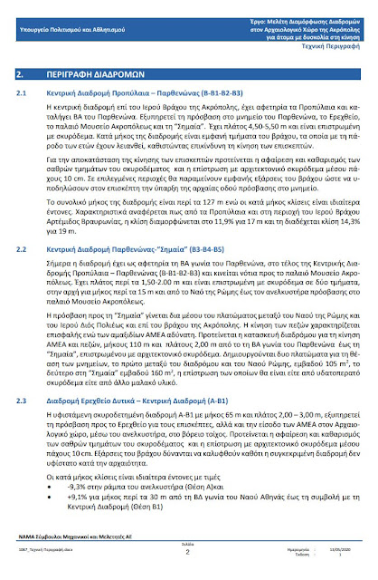 Η πρώτη σελίδα (από 4) της Μελέτης της εταιρείας ΝΑΜΑ που χρηματοδοτήθηκε από το Ίδρυμα Ωνάση χωρίς καν να υπάρχει ενεργή Σύμβαση για τις διαδρομές την άνοιξη 2020 που εκπονήθηκε. Το γιατί στο εξώφυλλο γράφει Ίδρυμα Ωνάση και ΝΑΜΑ και μέσα η προμετωπίδα γράφει “Υπουργείο Πολιτισμού και Αθλητισμού” είναι άλλη μια σοβαρή απορία. Όπως και το πώς η Μελέτη συζητήθηκε στο ΚΑΣ χωρίς να υπάρχει ούτε Σύμβαση ούτε απόφαση για ανάγκη διαστρώσεων και προδιαγραφές (πχ για τον ανελκυστήρα και τον φωτισμό είχε προηγηθεί γνωμοδότηση ΚΑΣ που όριζε την ανάγκη και για προδιαγραφές). Σε κάθε περίπτωση, το προσωπικό της Εφορείας Αρχαιοτήτων Πόλης Αθηνών και της ΥΣΜΑ ήταν σε θέση να εκπονήσουν μελέτη για το θέμα αυτό, κλάσεις ανώτερη από αυτή την προχειρότητα της κακιάς ώρας, και χωρίς να χρειάζεται η εμπλοκή κανενός χορηγού! Και σίγουρα όχι με “2 επισκέψεις στην Ακρόπολη” όπως γράφουν εδω οι μελετητές! Γιατί δεν επιλέχτηκε;