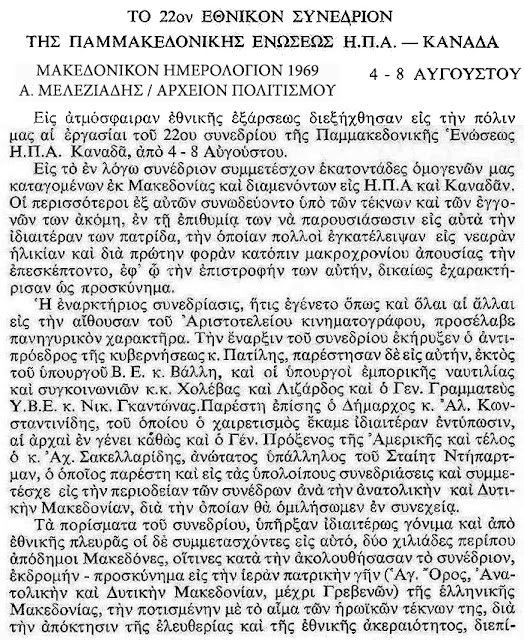 22ο Εθνικο Συνεδριο, Παμμακεδονικη Ενωση ΗΠΑ Καναδα, Καναδας, Θεσσαλονικη, Πατιλης, Βαλλης, Παμμακεδονικες, ενωσις, Χολεβας, Λιζαρδος, Γκαντωνας, 1969, Κωνσταντινιδης, Σακελλαριδης, Στειτ Ντιπαρτμεντ
