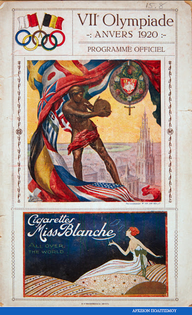 | Η επίσημη αφίσα των Αγώνων είχε βασικό θέμα τον κλασσικό αρχαίο Έλληνα δισκοβόλο… Αλλά το εξώφυλλο του προγράμματος των Αγώνων είχε… διαφήμιση τσιγάρων… |