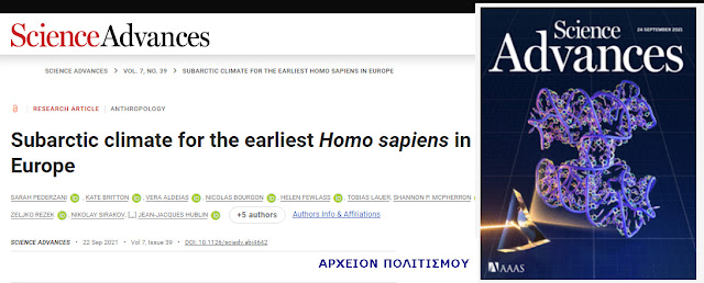 Early Homo sapiens groups in Europe faced subarctic climates – New insights into the climatic backdrop for an early wave of dispersal of our species into Europe during the last glacial period” στο Ινστιτούτο Max Planck for Evolutionary Anthropology του Aberdeen, 22.9.2021. ΑΡΧΕΙΟΝ ΠΟΛΙΤΙΣΜΟΥ, 23.9.2021.