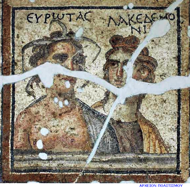 | Ο Ευρώτας και η Λακεδαιμονία, σε αρχαίο ψηφιδωτό, του 4ου αι μΧ, που ευρέθη στην Αντιόχεια της Ανατολίας. |