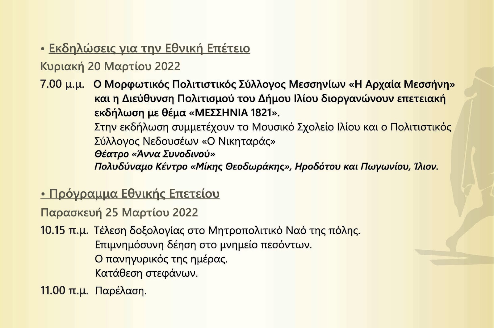 “Μεσσήνια 1821”, την 25η Μαρτίου, στο Ίλιον Αττικής…