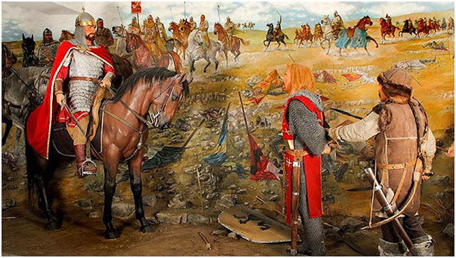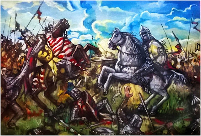 | Η Μάχη της Αδριανούπολης (1205). Αναπαράσταση σε πίνακα Βούλγαρου ζωγράφου. |