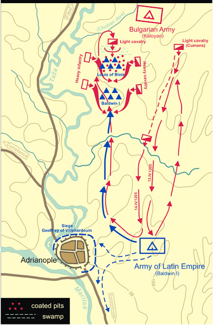 | Χάρτης της Μάχης της Αδριανούπολης (14 Απριλίου 1205). |