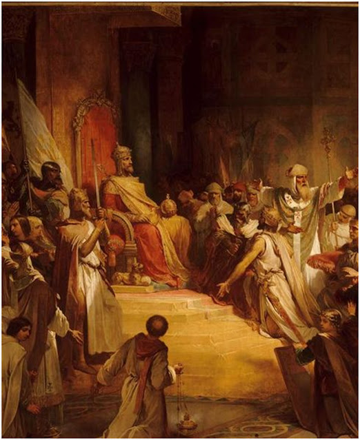 | Ο Βαλδουίνος της Φλάνδρας στέφεται αυτοκράτορας της Κωνσταντινούπολης, το 1204. Πίνακας του Louis Gallait στις Βερσαλλίες. |