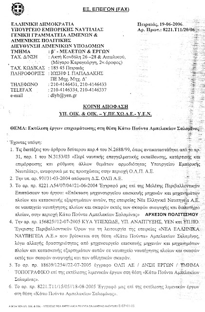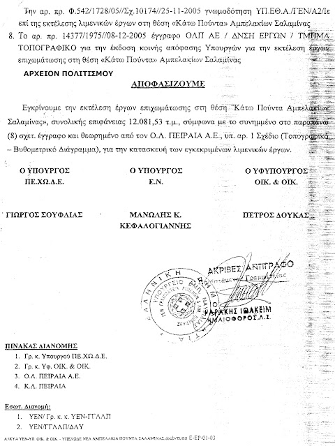Σουφλιας, Κεφαλογιαννης, Δουκας αδεια επεκτασης ναυπηγειου, αρχαιολογικος χωρος Σαλαμινος 2006 ναυπηγειο ναυπηγεια Σαλαμινας, Σαλαμινα, Σαλαμις, Αμπελακι Αμπελακια Πουντα Αμπαλακιων ναυμαχια επιχωματωση, πειραιας