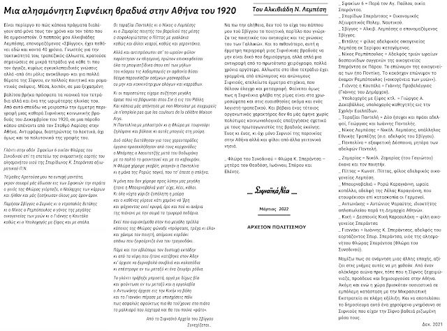 Μια αλησμόνητη σιφνέικη βραδιά, στην Αθήνα του 1920 – του Αλ. Ν. Λεμπέση