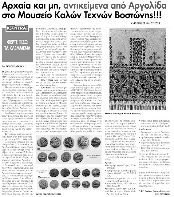Αρχαία και μη, αντικείμενα από Αργολίδα στο Μουσείο Καλών Τεχνών Βοστώνης!!! – ΦΕΡΤΕ ΠΙΣΩ ΤΑ ΚΛΕΜΜΕΝΑ
