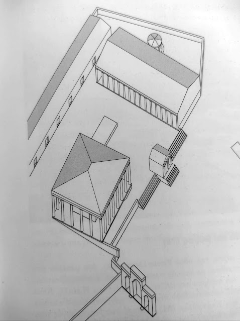 Στα δεξιά: ο περίβολος και τμήμα κλίμακας.