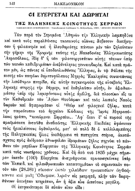 Οι ευεργέτες και δωρητές της ελληνικής κοινότητος Σερρών