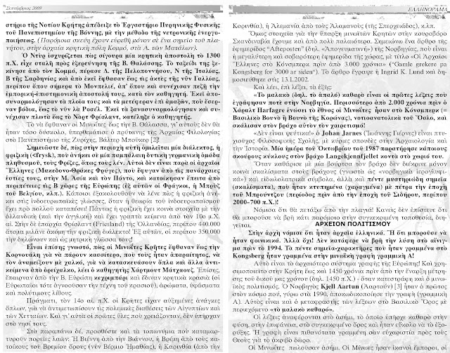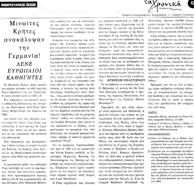 ΠΗΓΗ: Γ. Λεκάκης “Μινωίτες Κρήτες ανακάλυψαν την Γερμανία, λένε Ευρωπαίοι καθηγητές”, εφημ. Χρονικά Κισάμου και Σελίνου, Φεβρ. 2009. Γ. Λεκάκης “Μινωίτες Κρήτες