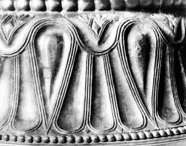 προσαρτημένες στην βάση με καρφιά. Στον ώμο του κρατήρα υπάρχει ένα στολίδι σε