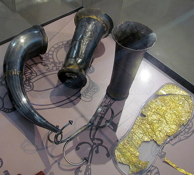 κρατήρες, ασημένια κύλικα και ρυτό, χάλκινα κράνη κλπ.