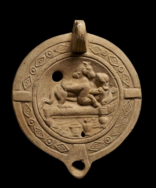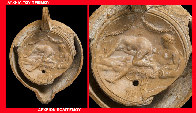 Σε άλλους αθηναϊκούς – κορινθιακούς λύχνους, με ερωτικά θέματα, φαίνεται η πρωτοτυπία των Ελλήνων, την οποία μεταλαμπάδευσαν (και αυτή) στην ιταλική χερσόνησο. Οι αρχαίοι Έλληνες είναι, λοιπόν, οι διδάσκαλοι και του “ερωτισμού” των Λατίνων…