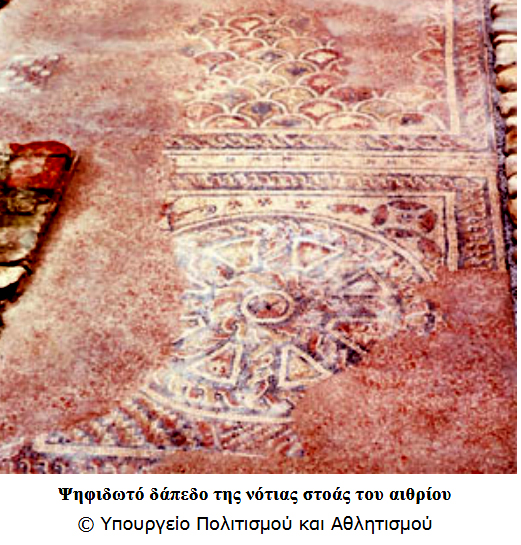χώροι έφεραν ψηφιδωτά δάπεδα, τα οποία σώζονται σε κακή κατάσταση. Τα σωζόμενα