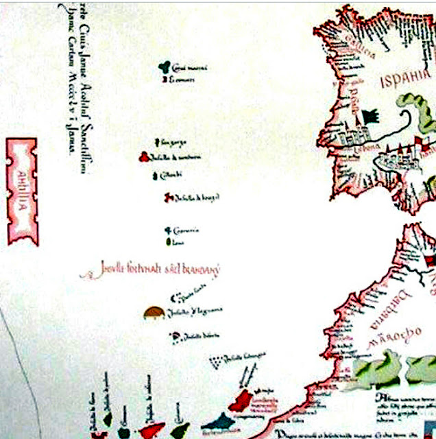 Στον χάρτη του Bart. Pareto (1455) η Αντιλία σημειώνεται ως το μεγαλύτερο νησί, στο δυτικότερο άκρον της Ευρώπης, στον Ατλαντικό, κλπ.