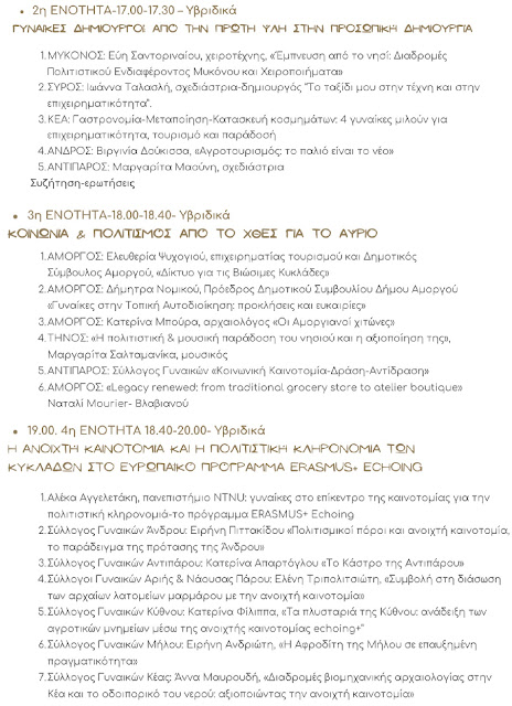 και την καθημερινότητα των γυναικών στις Κυκλάδες, καλύπτουν θέματα ευρύτερου
