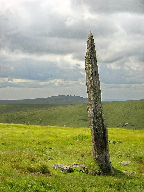 στο Devil’s(**) Tor – απομονωμένη όρθια πέτρα (παρακάτω φωτογραφία) ύψους 3,5 μ. ίσως έχει άλλο 1 μ. κάτω