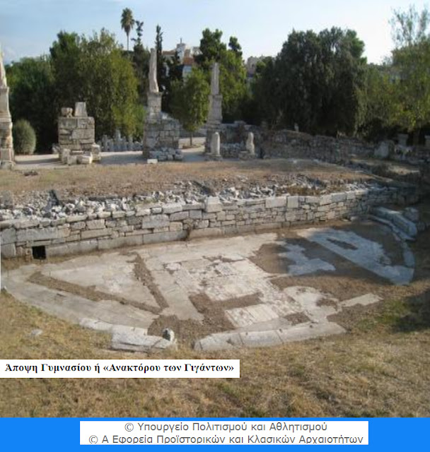κτήρια, όπως το Ωδείο του Αγρίππα, τμήμα της Μεσαίας Στοάς και της Νότιας Στοάς