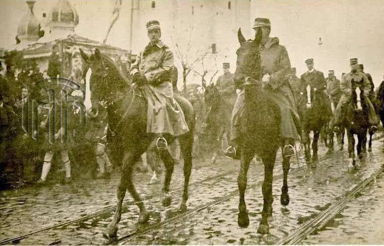 Η είσοδος του βασιλιά Γεωργίου Α΄ στην απελευθερωμένη Θεσσαλονίκη, στις 29 Οκτωβρίου 1912. Κυκλοφόρησε και σε καρτ ποστάλ. Αρχείο Β. Δούκα – Κεντρική Υπηρεσία ΓΑΚ.