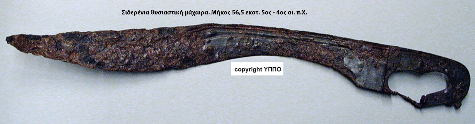 - δύο σιδερένιες θυσιαστικές μάχαιρες (5ος – 4ος αι. π.Χ.),